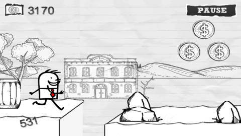 《涂鸦跑酷》(Amazing Doodle Run)iphone版是一款酷跑游戏,和其它酷跑类游戏不同的是这款游戏采用的是素描风格,游戏玩法很简单,背景音乐也很轻松,合适在工作间隙等候公车之类的情况下玩玩。