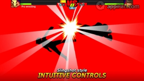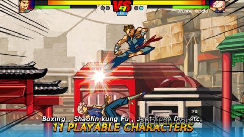 本作没有任何按键操作,战斗也完全不依靠玩家的操作技巧和节奏,不同的人物总共有四种招式,列在画面的上方,选择好之后正式进入攻击了,你要像玩《愤怒的小鸟》一样,按住你的人物朝相反方向拖出一条轨迹线,然后松开将人物弹射出去,弹射过程中自动发招,如果时机与距离正确碰到对手的话,就可以"啪啪啪"地打中对方了。